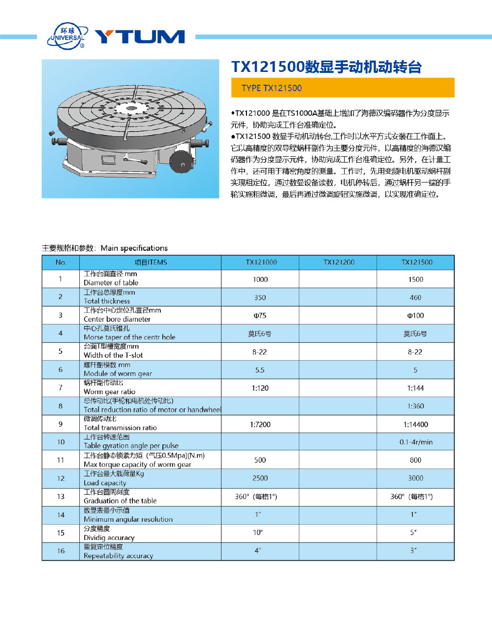 TX121500數(shù)顯手動機動轉(zhuǎn)臺