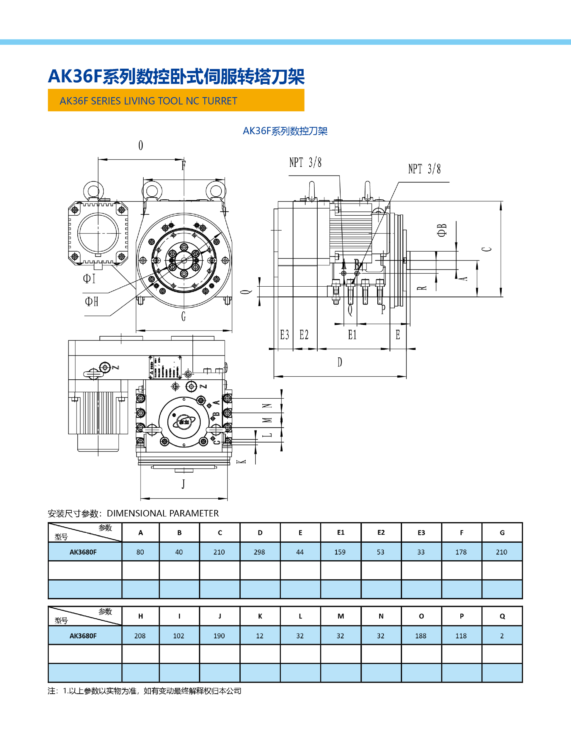 AK36F系列數控臥式伺服轉塔刀架